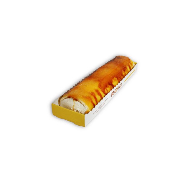 Deliciosa planxa de pa de pessic enrotllada amb un farcit de nata i banyada amb crema cremada