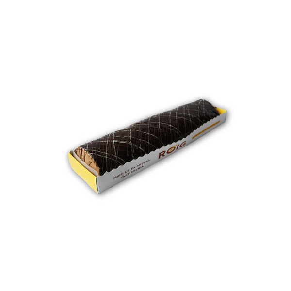 Deliciosa planxa de pa de pessic enrotllada amb un farcit de trufa i banyada amb xocolata