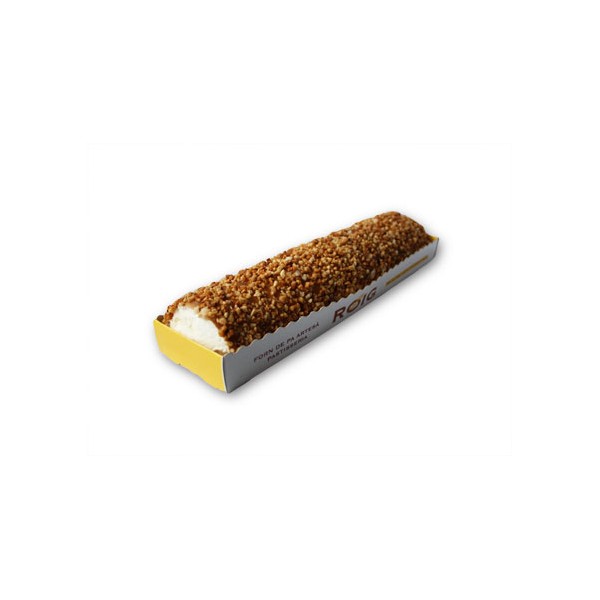 Deliciosa planxa de pa de pessic enrotllada amb un farcit de nata i coberta amb crocant