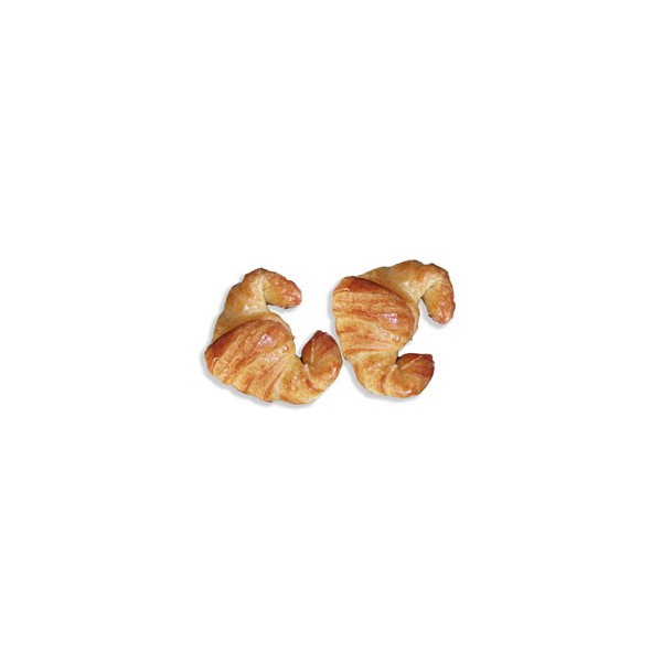 Mini croissants elaborats igual que els seus germans grans, amb una massa de mantega. El secret radica en aconseguir una contrast tendre i cruixent alhora, amb un lleuger gust a mantega que perdura en boca. També els elaborem amb xocolata blanca i negre.