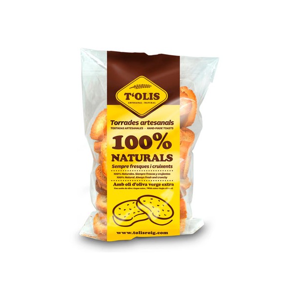 Nuestras tostadas están elaboradas con pan 100% artesanal, sin conservantes ni colorantes con aceite de oliva extra virgen de arbequina con DOP y con el máximo detalle y calidad. Son excelentes para acompañar con quesos, embutidos, patés, ahumados, dulces o para comer solos.